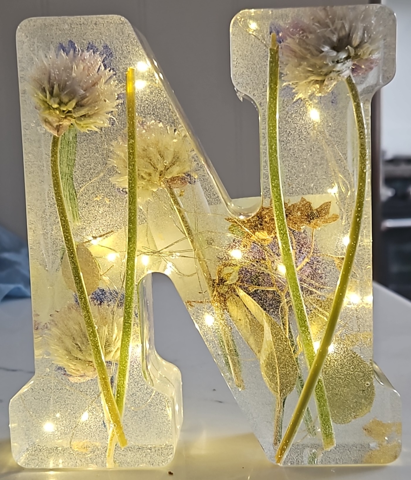Epoxy resin initials night lights.