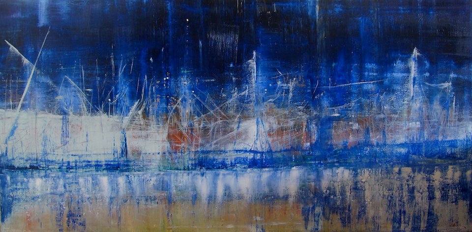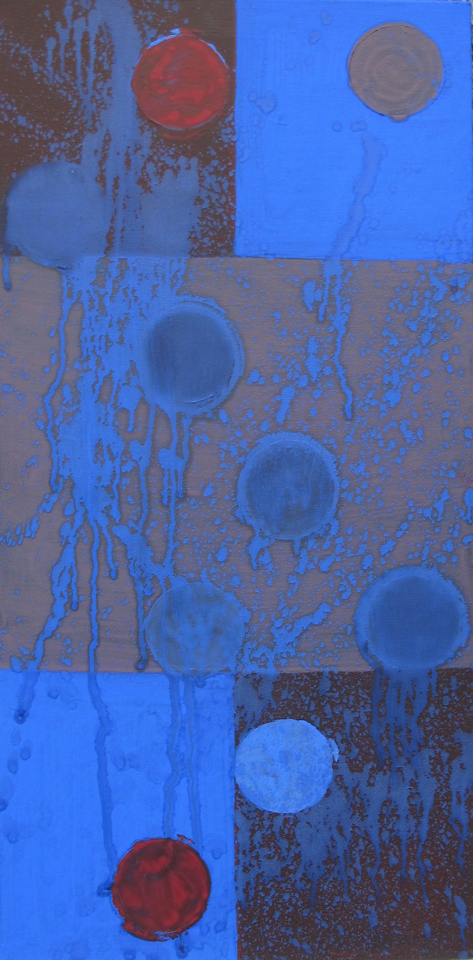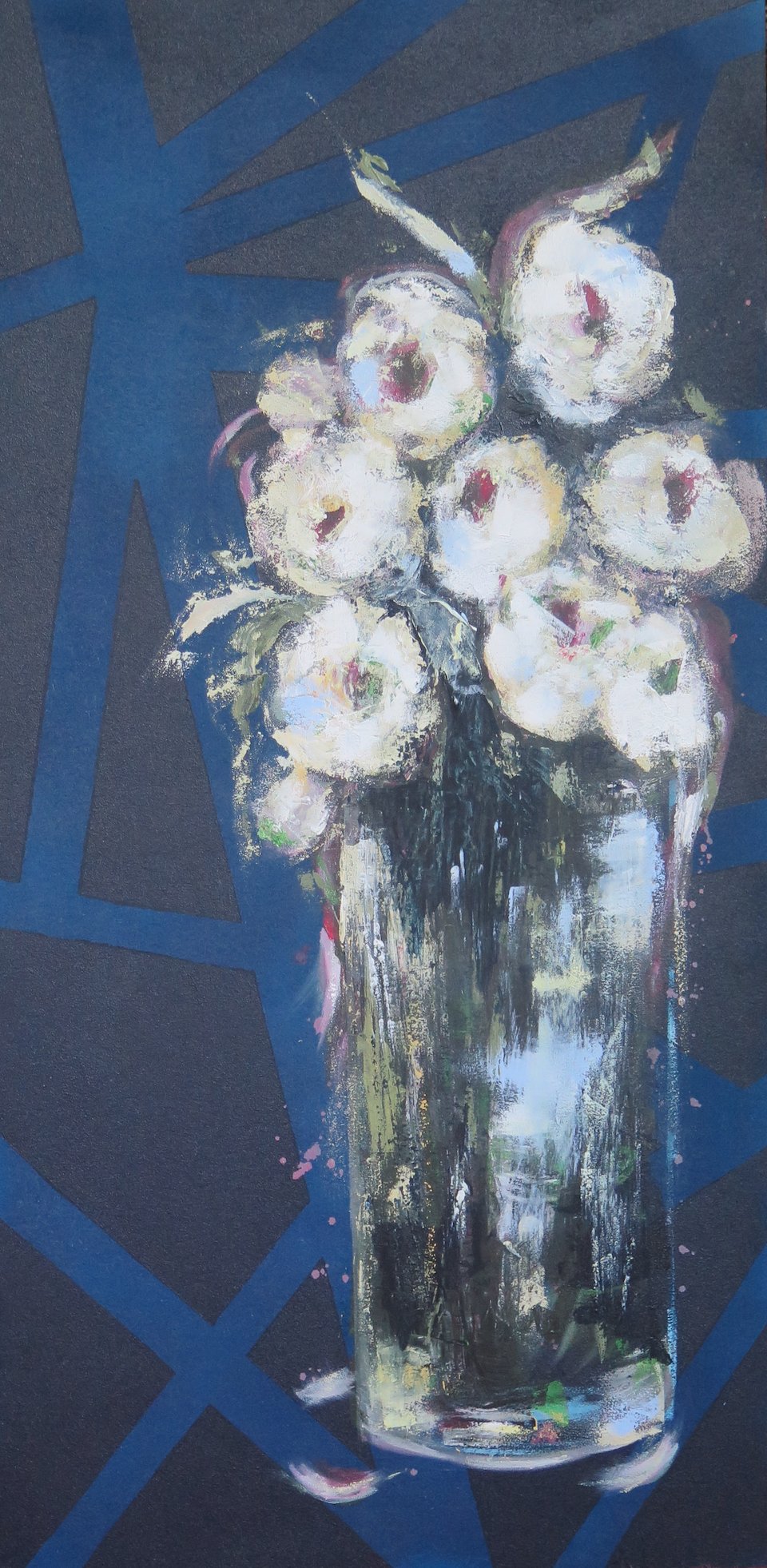 Blue Flowers . Acrylic and oil on board. 12 x 24 inches
