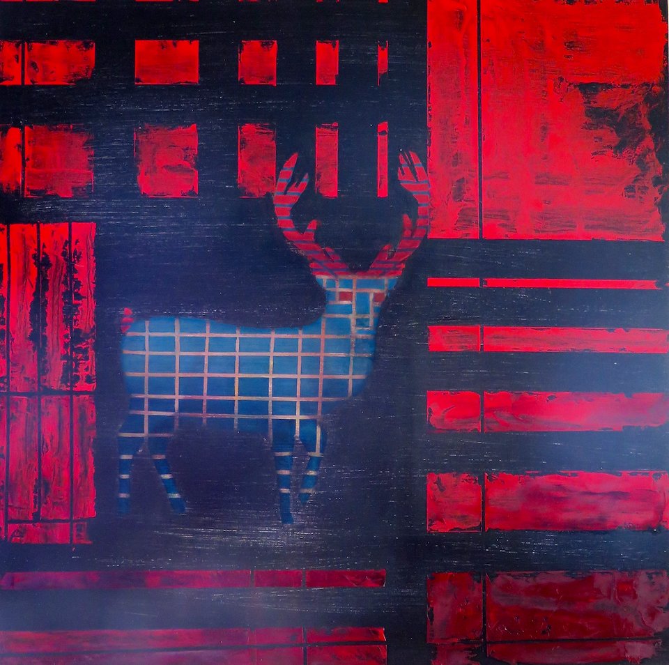 Stag with Reds – Oil on board – 24 x 24 inches – Available