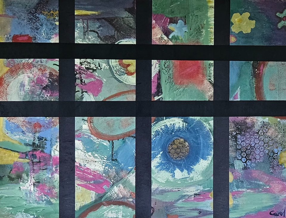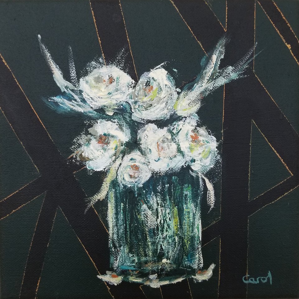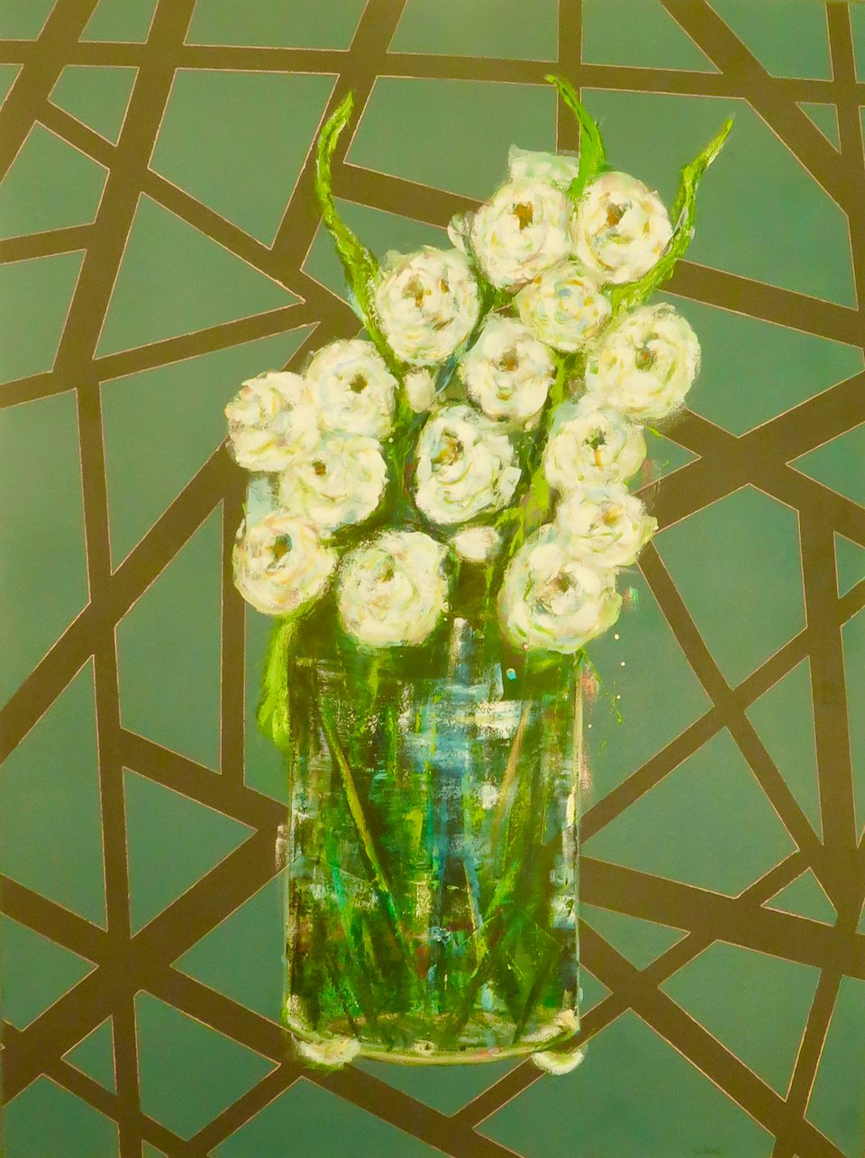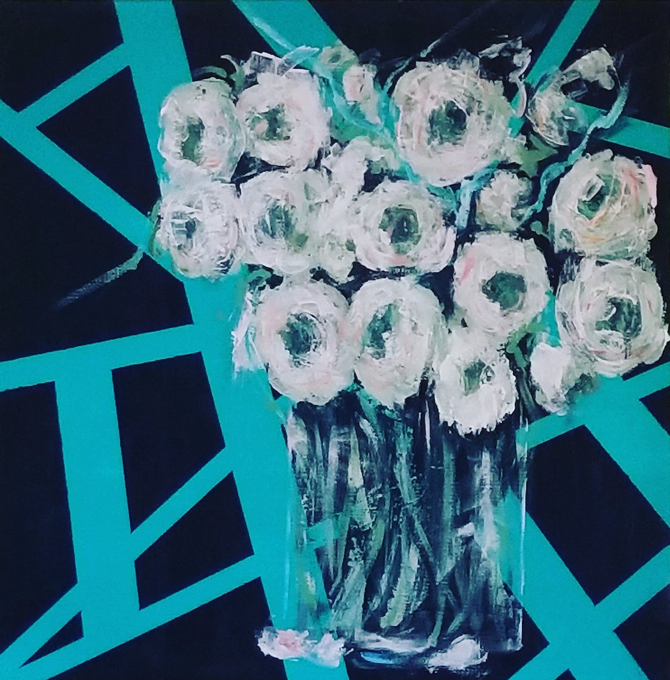 Teal Flowers . Acrylic on board. 22 x 22 inches