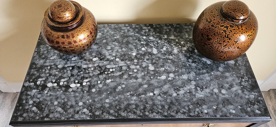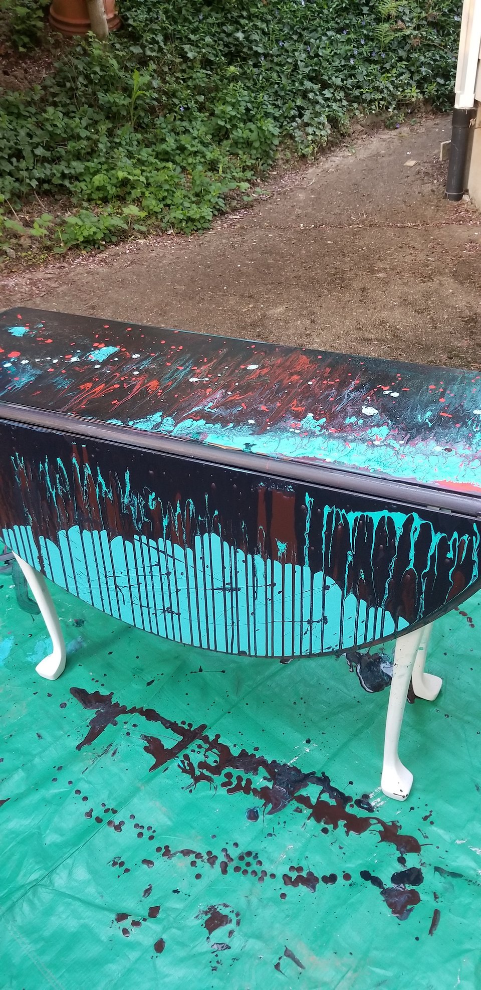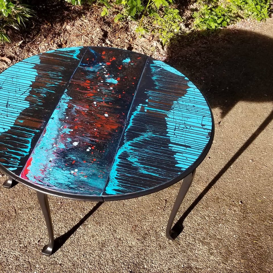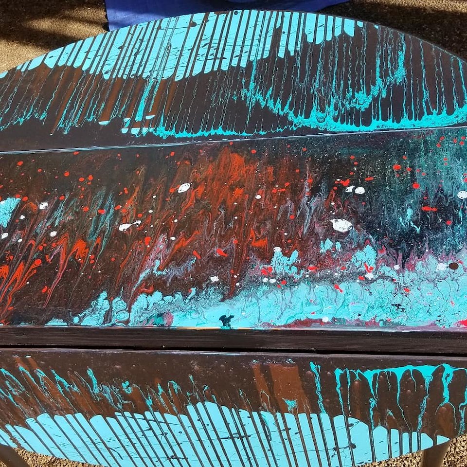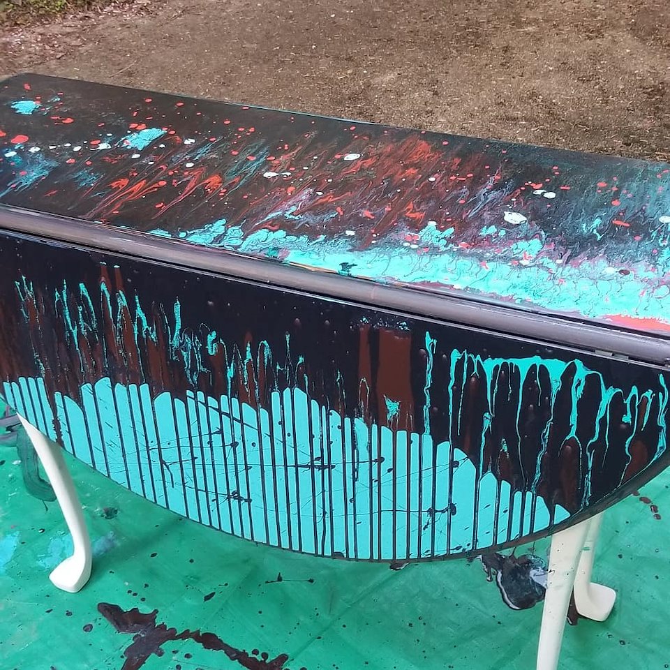 Sanded back then a paint and pour technique used