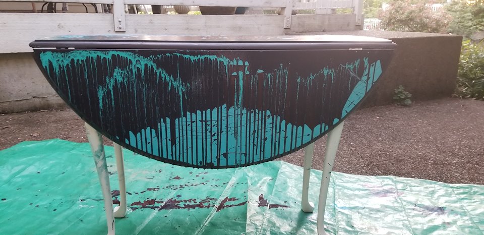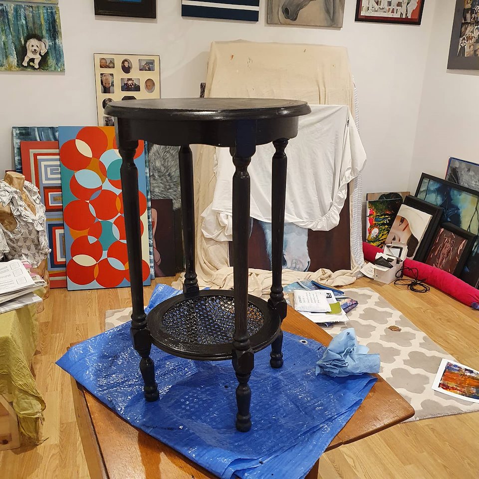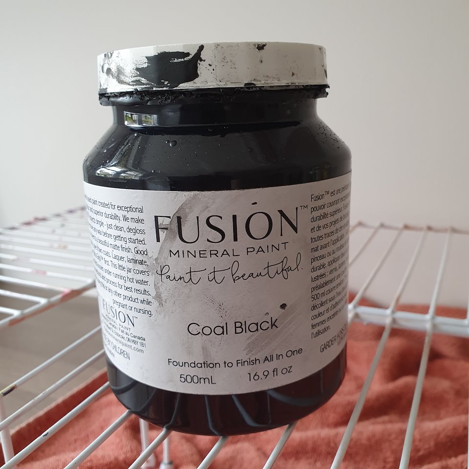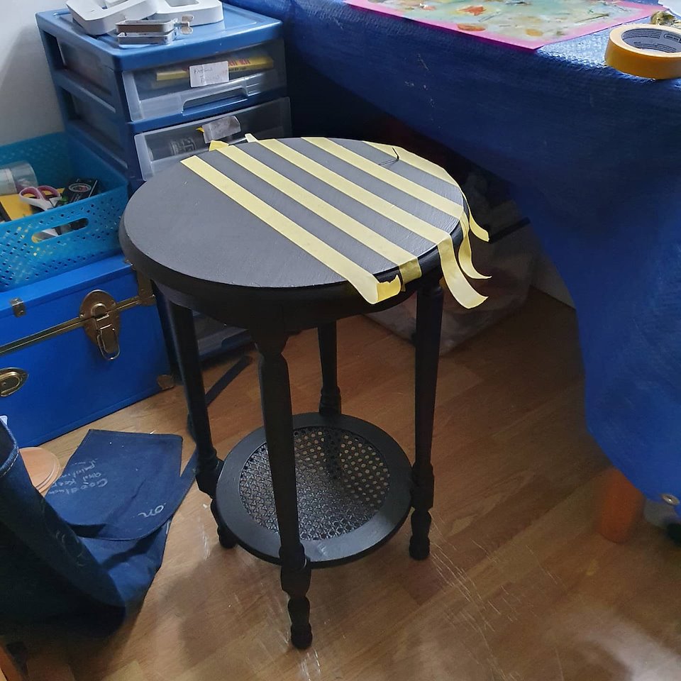 I used Fusion paint for the black and blue table.