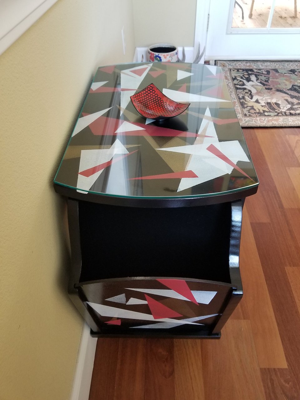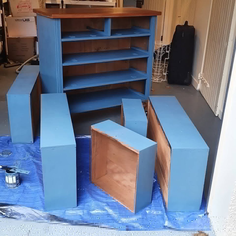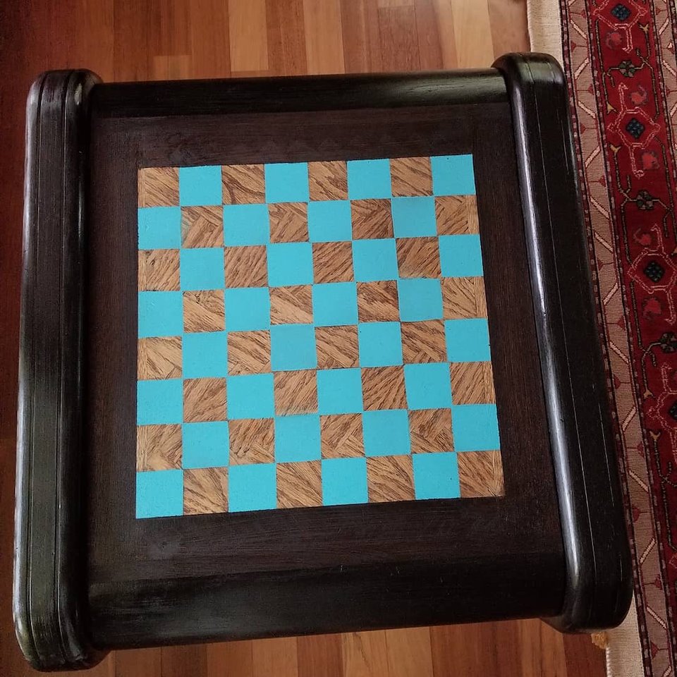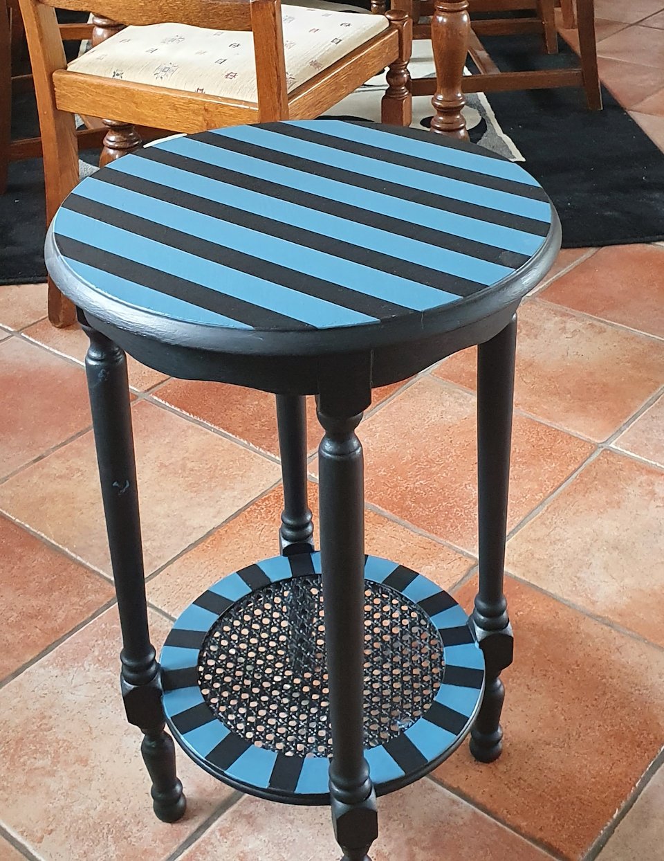 I used Fusion paint for the black and blue table.