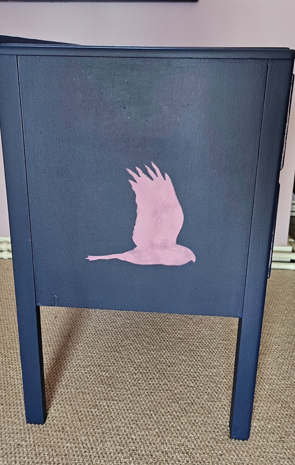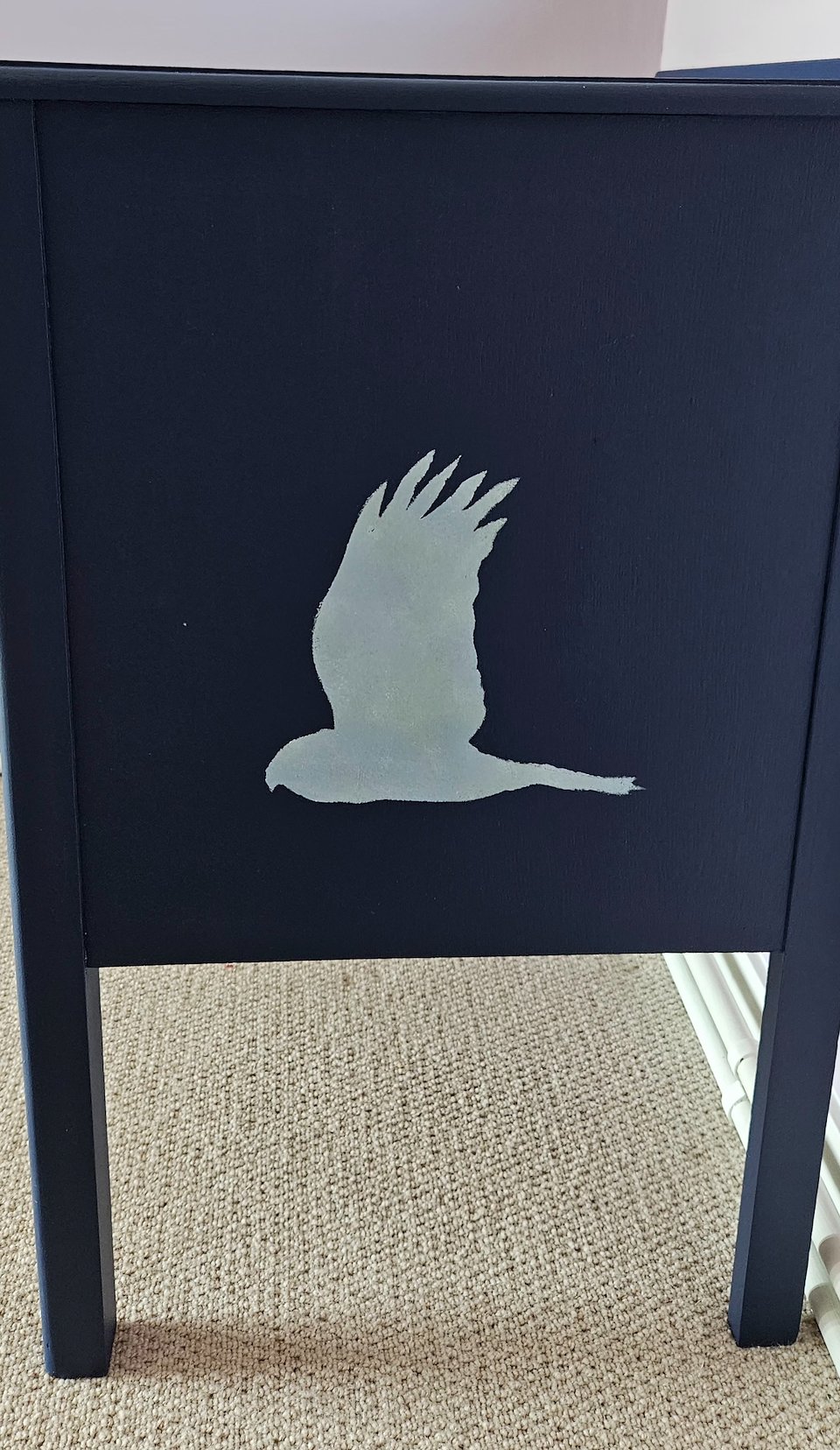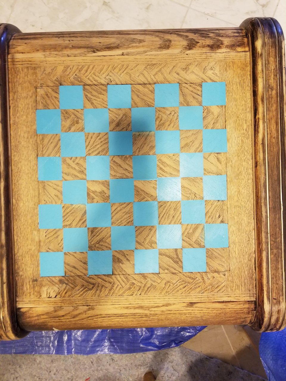 Simply sanded back , gridded and stencilled blue