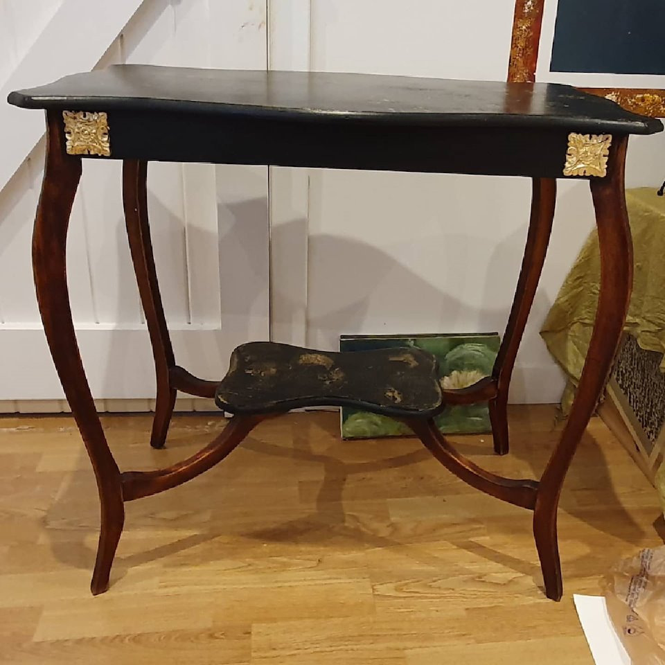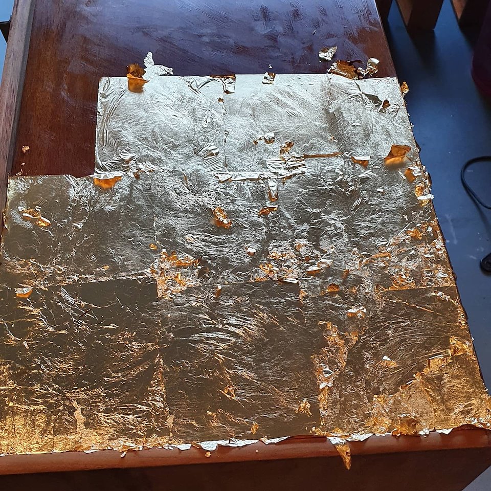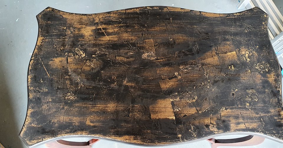 The top of the table was first covered in gold leaf then I used my technique to achieve the look.