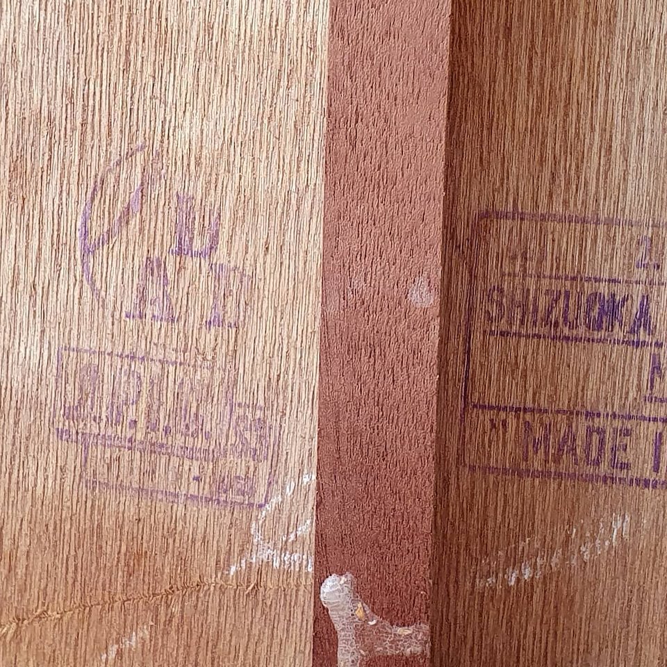 Plywood made in Shizouka Japan. Looks brand new after all these years.