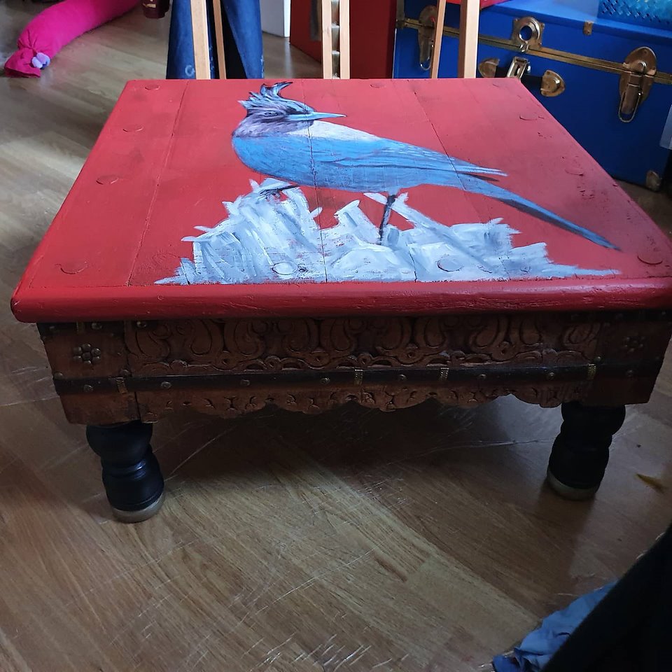 After sanding back , a little play with paint, I can design as I go along